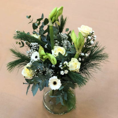 Een stijlvol winterwit boeket voor in de koude wintermaanden.